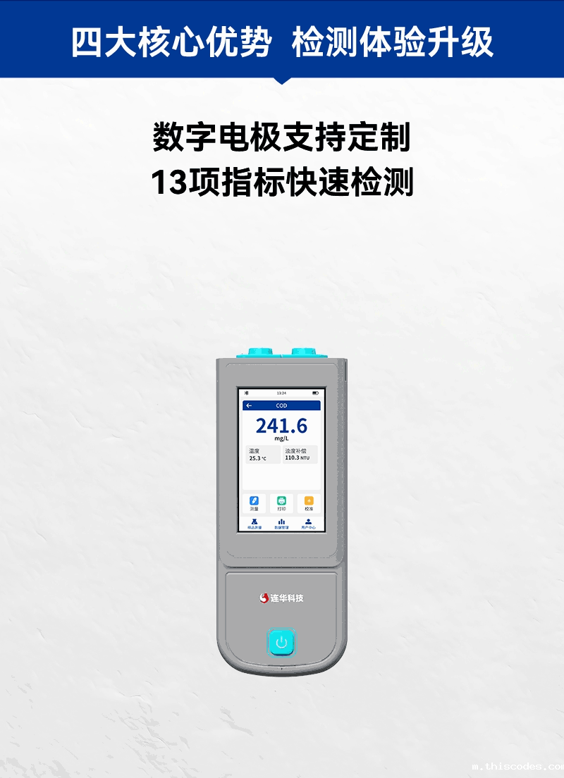 1、手持式迷你主机,支持COD、氨氮、浊度、蓝绿藻、叶绿素、电导率、PH、ORP、溶解氧、污泥浓度、温度13项指标快速检测,满足各领域水质检测需求;