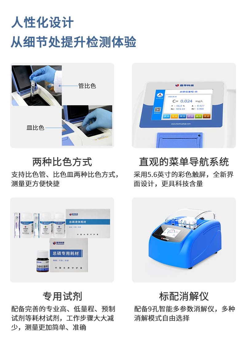 5、专业总磷测定仪:作为测定总磷的最专业的水质测定仪,浓度直读,测量结果更准确稳定;