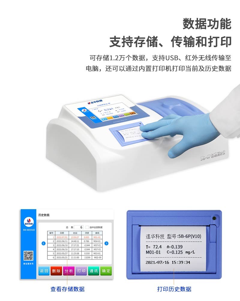 5B-6P(V10)总磷测定仪为实验室智能型测定仪,精度高,寿命长,更稳定。本仪器可根据水样浓度的高低选择不同的测量方式,各个测量项目可一键切换;同时支持比色皿(池)和比色管两种比色方式;内置多条标准曲线,用户可根据需求进行选择;兼具智能数据分析功能,图表、列表显示数据,分析一目了然;高清晰度彩色液晶显示屏,中文显示界面,人性化操作提示,使用更简单。能够广泛的应用于各种行业(工业废水、城市污水、生活污水及江湖流域地表水)废水的检测。可适合不同用户的多种需求,可在化工、石油、焦化、造纸、冶金、酿造、医药等工业废水及各种生活污水监测应用。